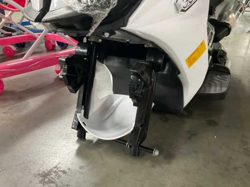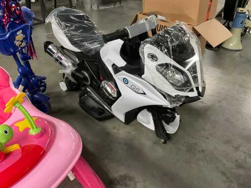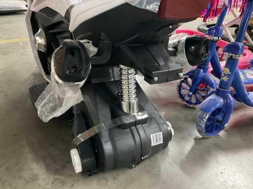 -elektrische speelgoedmotor in het wit. Van de elektrische speelgoed motor zijn de banden en oplader niet inbegrepen.