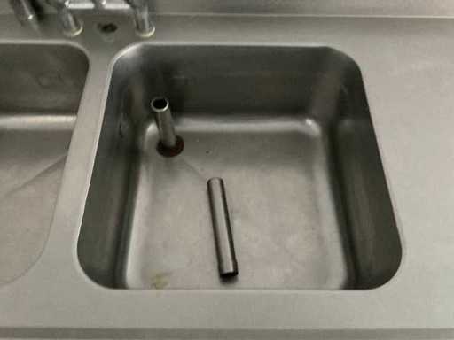Voorzien van: dubbele wasbak 500x500x250mm; Demontage en transport volledig voor rekening en risico van koper;