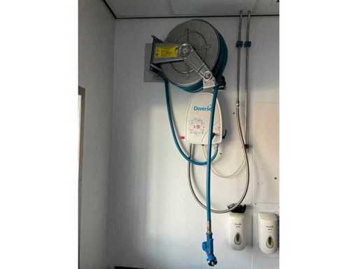 Voorzien van: Blauwe reinigingsslang, Doseersysteem Diversey, Spuitpistool; Demontage en transport volledig voor rekening en risico van koper;