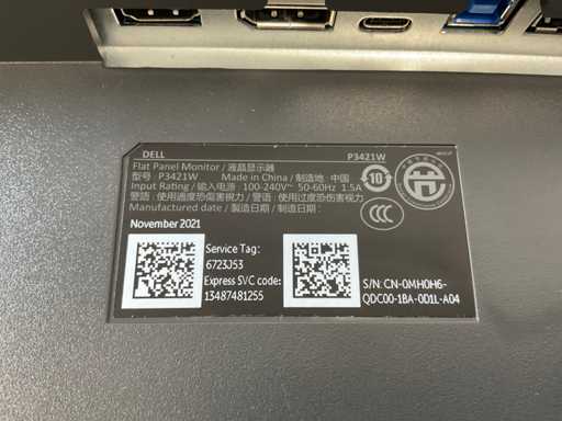 (P3421W) 34”, 3440x1440 (UWQHD) IPS Curved Monitor;