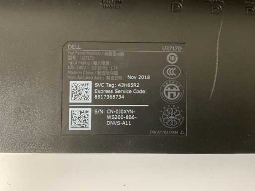 (U2717D) 27”, 2560x1440 (QHD) IPS Monitor;