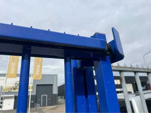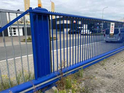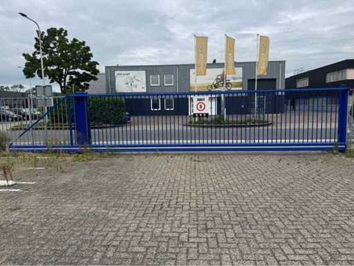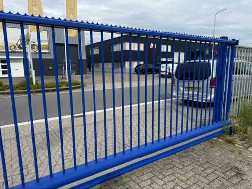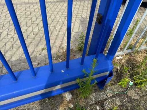 Hek opening is ca. 8000 mm; totale hek lengte ca. 10300 mm; hek hoogte 2100 mm; met portalen; te openen met code; blauw gepoedercoat hekwerk; wordt gedemonteerd en transport klaar gemaakt door verkoper; kijkdag en afhalen op afspraak; laden in overleg; februari / maart;