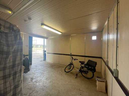 Panelen zijn 140 mm dik; inhoud is 97,50 m3; deur is 1900 mm breed en 2600 mm hoog; wordt gedemonteerd en transport klaar gemaakt door verkoper;