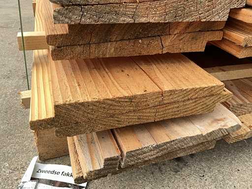 Lengte is ca 5000 mm; plank is 12x 27 mm; werkende breedte 175 mm; verpakt op pakket.