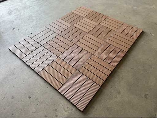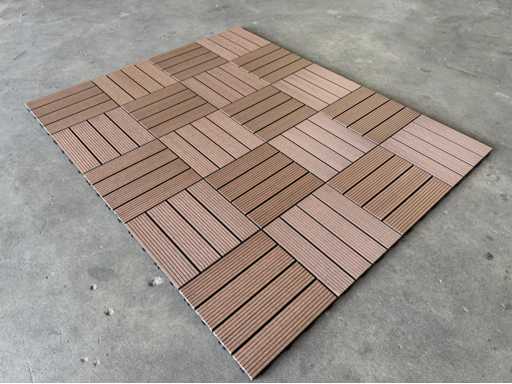 1 tegel is 0,09 m2; tegels zijn koppelbaar; dit kavel bestaat uit 111 stuks tegels
