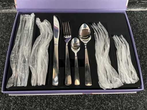 Voorzien van roestvrij staal; 6x tafelmes; 6x tafelvork; 6x tafellepel; 6x theelepel; nieuw in doos