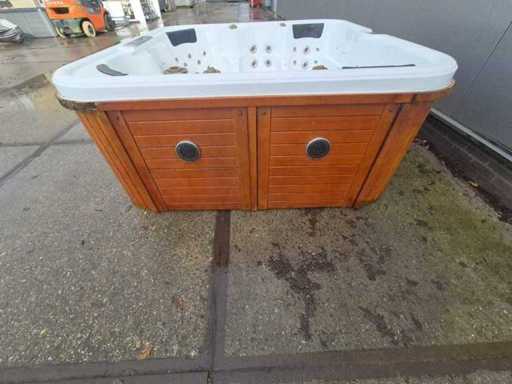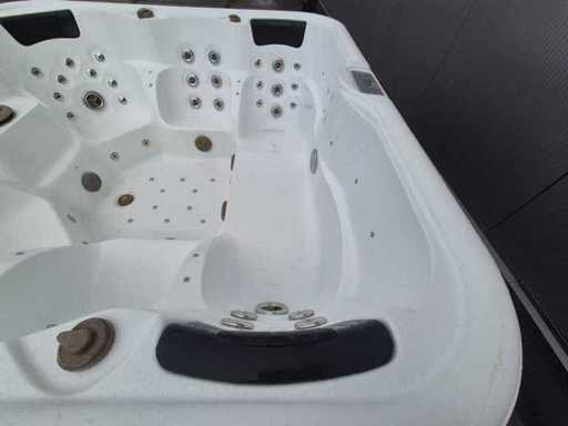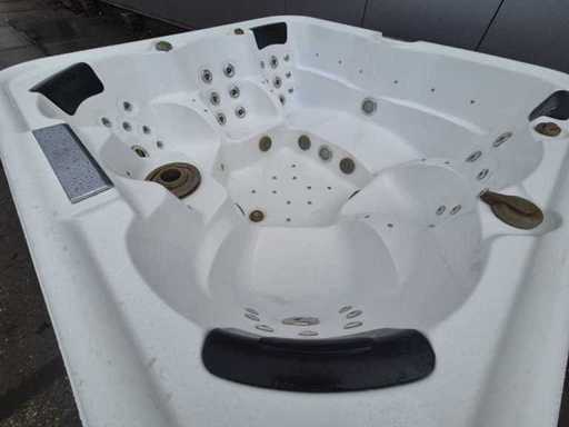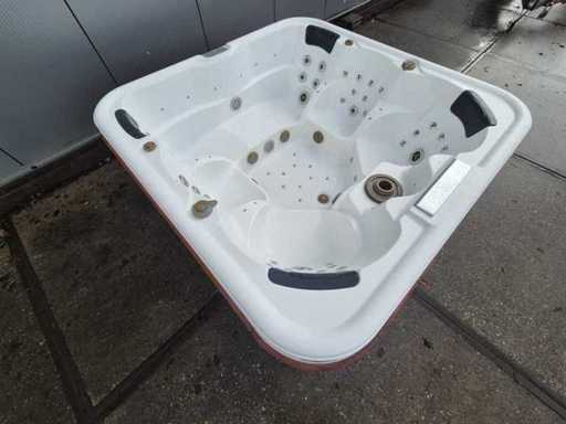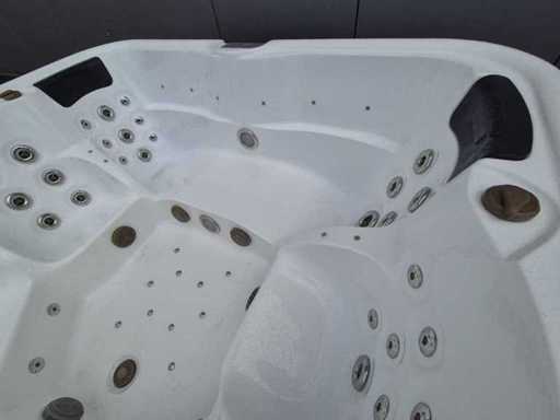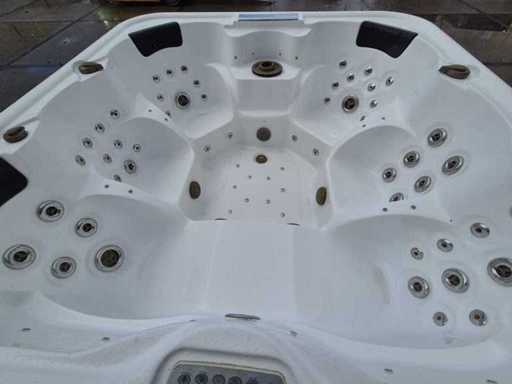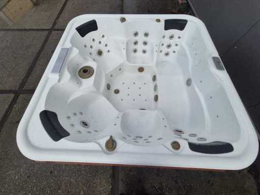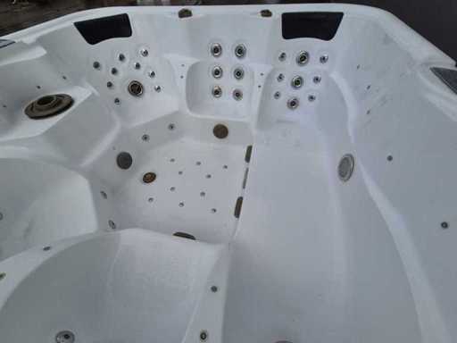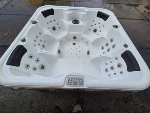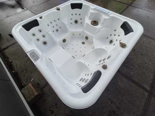 Voorzien van 2 ligplaatsen tegenover elkaar; 4 zitplaatsen; waterval; hoofdkussens; speakers; automatisch filtersysteem; RVS massage jets; Niet getest op functioneren (Marge, geen BTW)