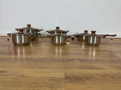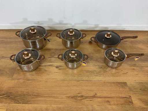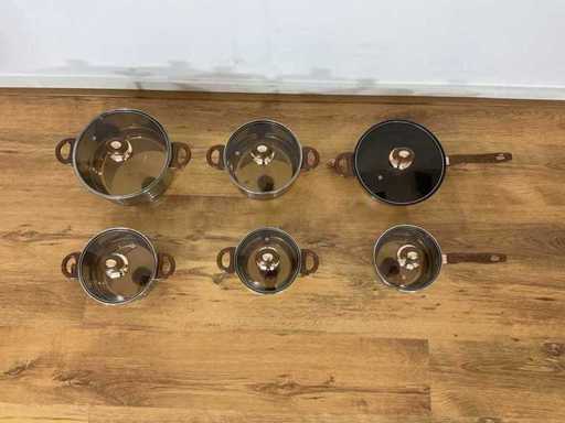 Inclusief deksel: Ja Kleur: Wit Materiaal: RVS Type anti-aanbaklaag: Standaard Type pan bodem: Sandwichbodem PFAS-vrij: ja Antiaanbaklaag: Ja Steelpan met glazen deksel: inhoud 2,1 liter, 16 x 10.5 cm Kookpan met glazen deksel: inhoud 2,1 liter, 16 x 10.5 cm Kookpan met glazen deksel: inhoud 2,9 liter, 18 x 11.5 cm Kookpan met glazen deksel: inhoud 3,9 liter, 20 x 12.5 cm Kookpan met glazen deksel: inhoud 6,5 liter, 24 x 14.5 cm Hapjespan met glazen deksel: inhoud 3,4 liter, 24 x 7.5 cm Nieuw in doos