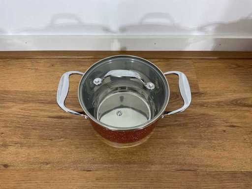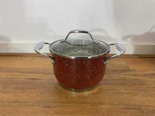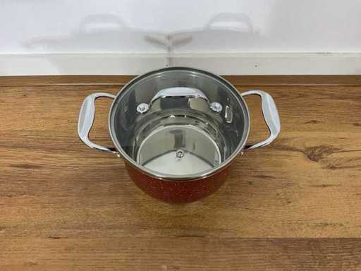 Steelpan met glazen deksel: inhoud 2,1 liter, 16 cm