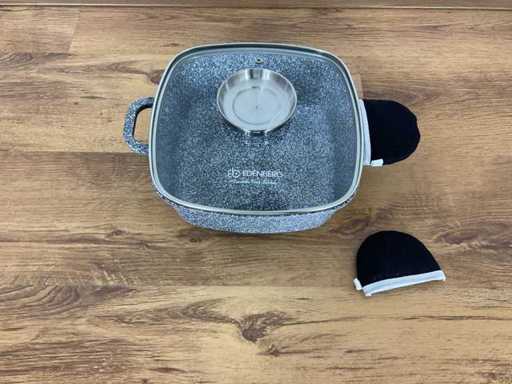 Geschikt voor alle warmtebronnen Inclusief deksel: Ja Kleur: Grijs Materiaal: Gietaluminium Vorm: Vierkant Materiaal deksel: Glas MPN: EB8002 Diameter: 24 cm Product breedte: 24 cm Product hoogte: 15 cm Product lengte: 24 cm Volume in liters: 4.4 Type anti-aanbaklaag: Keramisch Type handgreep: Ergonomisch Type pan bodem: Antiaanbaklaag Aantal delen: 2 Diameter pan onderzijde: 22 cm Vaatwasserbestendig: Ja PFAS-vrij: ja Materiaal handgreep / handgrepen: Aluminium Antiaanbaklaag: Ja Nieuw in doos