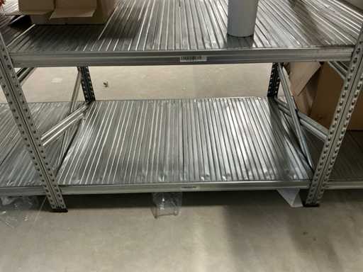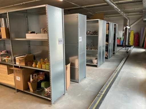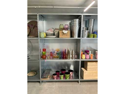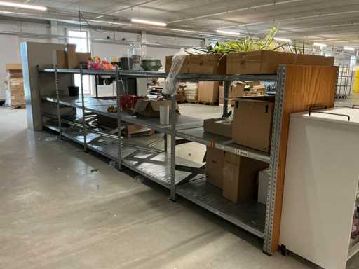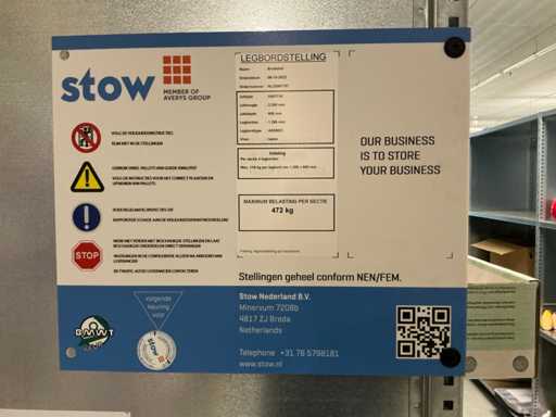 Inclusief lage legbordstelling (5 secties 120x80 cm, hoogte: 145 cm. Inhoud niet inbegrepen.
