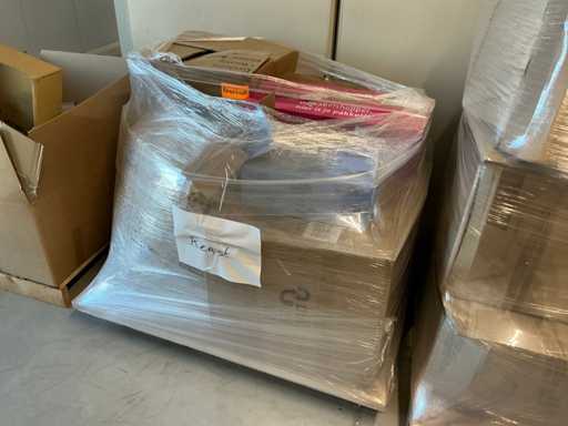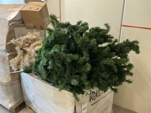 Waaronder: Kunst kerstbomen, kerstverlichting, decoratiematerialen. Op 2 pallets.