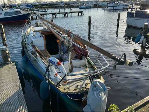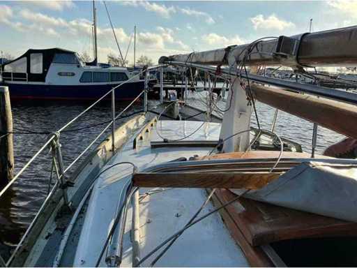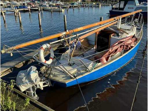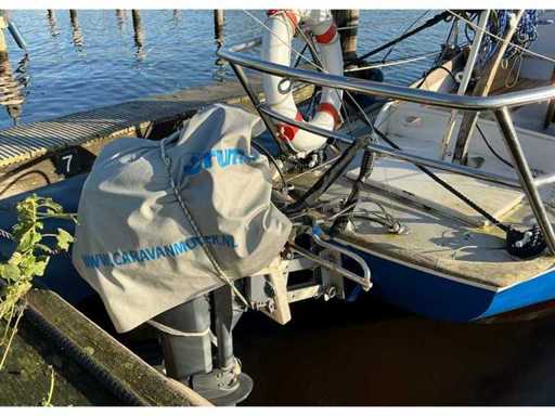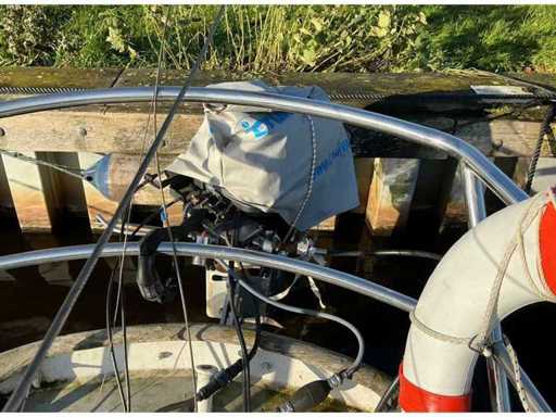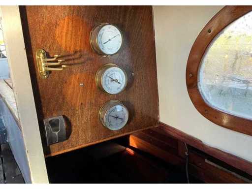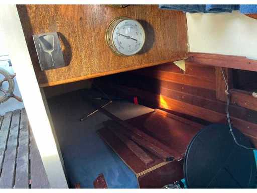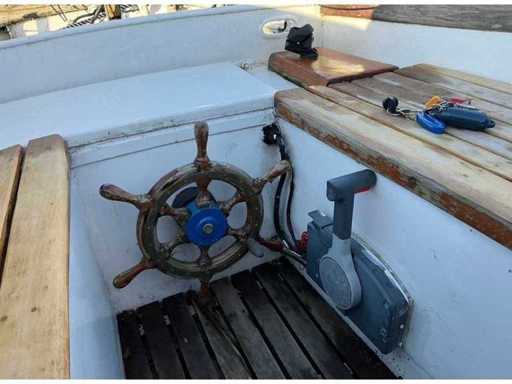 Klassiek zeiljacht BJ 1957, L 7,80m B 1.40 m diepgang 80 cm, masthoogte 12,15 m, 8 pk 4 takt elektrisch startend Yamaha BB motor , op afstand bestuurbaar gemaakt vanuit de kuip met houten stuurwiel en startunit met bediening vooruit/achteruit en gashandel.