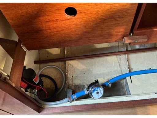 Nieuwe waterpomp geplaatst voor pantry. 2 pits cardanisch opgehangen gasstel. Chemisch toilet. Zwemtrap. Bedrading voorbewerkt voor plaatsen navigatie nachtverlichting. Dieptelog en snelheidslog in onderwaterschip geïnstalleerd. Nieuwe extra dikke slaap matrassen voor vier slaapplaatsen.