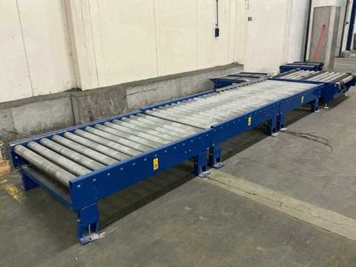 Bestaande uit: 3 delen 150x120 cm, 1 rollenbaan met ketting transport, 2 kettingtransport delen 80x110 cm,