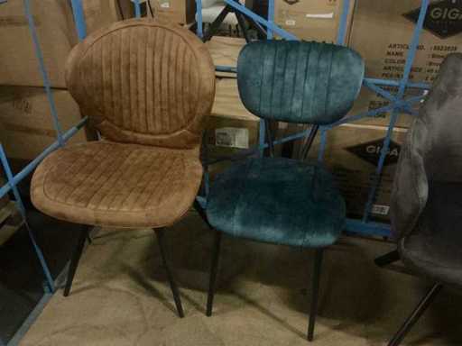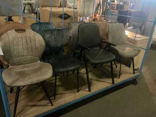 Alles in kar, 8 x diverse eetkamerstoel, stoffen kleuren etc.