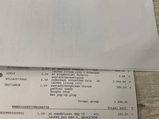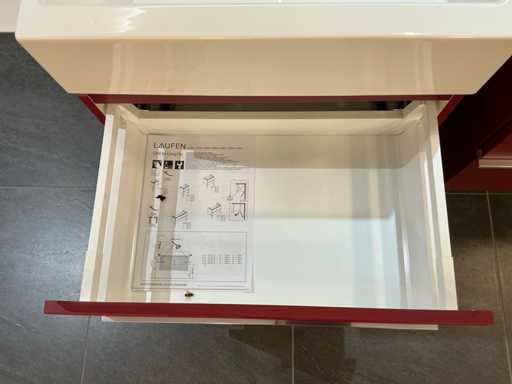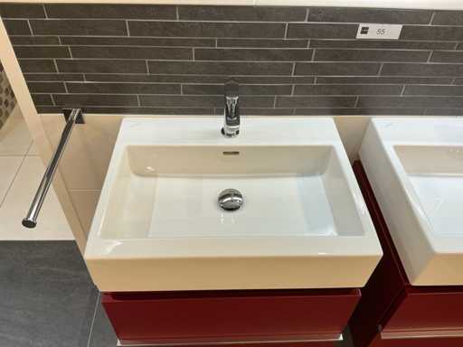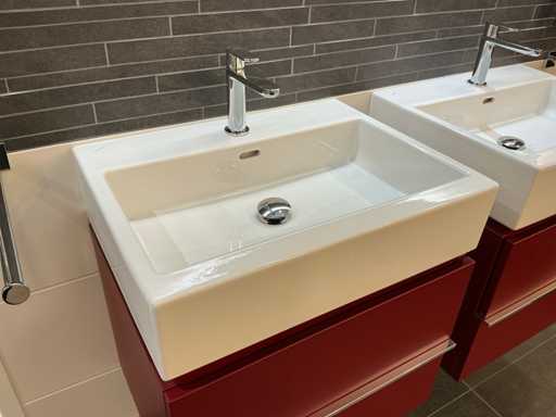2x wastafel 60x46cm, 2x onderkast 595x455mm met 2 lades, Paffoni Candy wastafelkraan, 2 handdoekhouders en zeeppompje. Zonder de los verkavelde spiegel ( kavel 502)