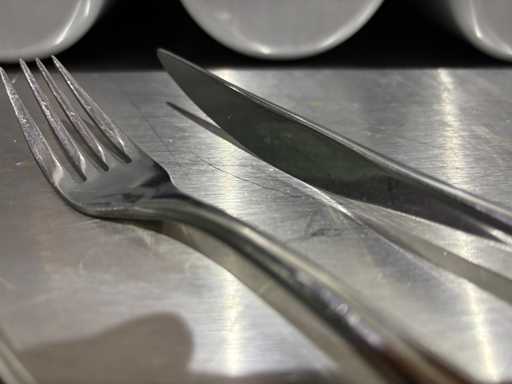 50x Mes 24 cm 50x vork 21 cm 50x lepel 21 cm LET OP! Bestekbak behoort niet tot de kavel. Kavel wordt los geleverd, koper dient zelf zorg te dragen voor voldoende verpakkingsmateriaal.
