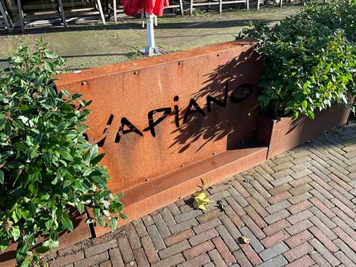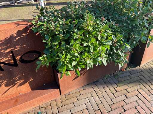 Plantenbak: 120x45x40 cm. V.v. 3 stuks Lechuza Cubico 40 binnenpot met inhoud. Terrasafscheiding: 150x45x100 cm.