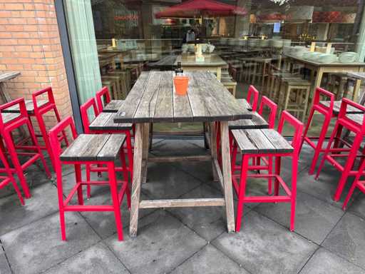 Hutten - Terrasset Bartafel met planten en 6 krukken
