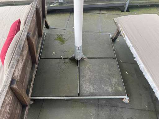 V.v. verlichting, inclusief voet met tegels. LET OP! 1 hoek hangt scheef. Kavel bevindt zich op het dakterras.