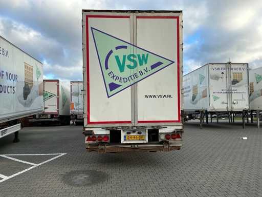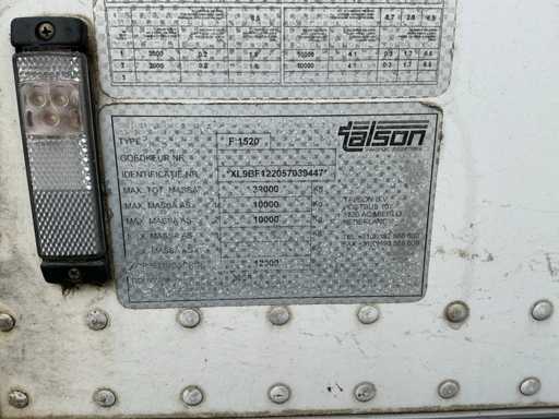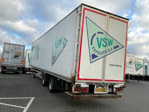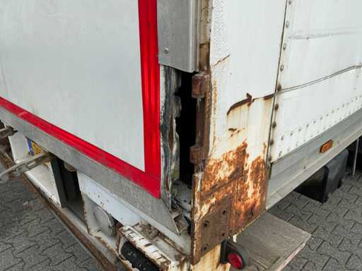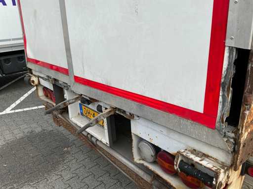 Voorzien van luchtgeveerde BPW assen waarvan as 2 als stuur-as uitgevoerd, Dhollandia laadklep, Talfix, lengte totaal 1380cm, breedte 255cm, wielbasis 881cm, afstand hart koppeling tot achterzijde voertuig 1200cm, max massa 32000kg.