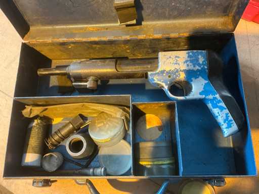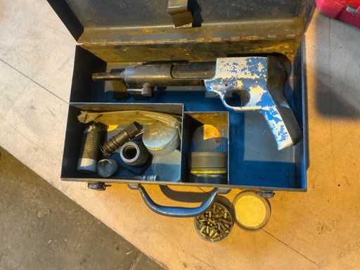 Voorzien van opbergkoffer en doosjes met nagels.