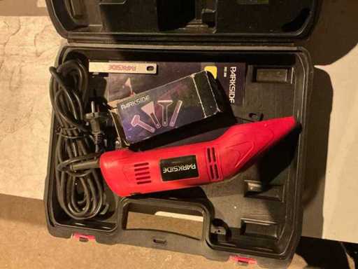 Bestaande uit een Topcraft accu haakseslijper zonder lader, Parkside multitool, GBM accuboormachine zonder lader, 2 230V werkkampen