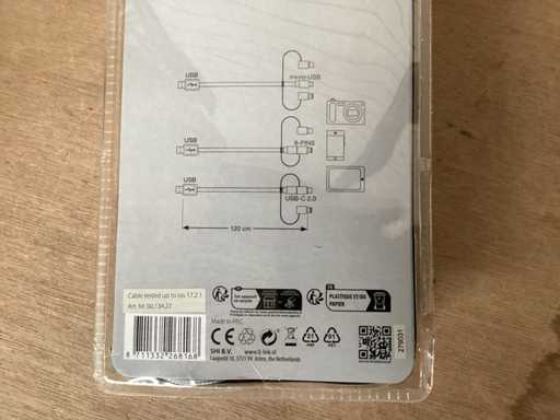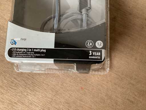 usb laadkabel met 3 aansluitingen, usb-c, apple, en micro usb, lengte 120 cm