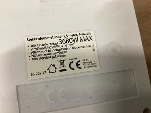 Stekkerdoos 4 voudig, 3680 watt (19x)