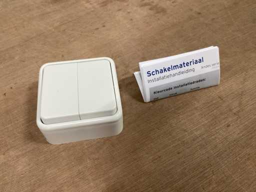Dubbele serieschakelaar, opbouw, wit, max 2300 watt