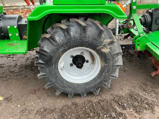 2WD, 2 rijsnelheden, 3 versnellingen + achteruit, PTO 540/720 rpm, 1x DW ventiel, hef, aftakas, frees 1100mm, neerklapbare beugel, werkverlichting, gereedschap kistje,