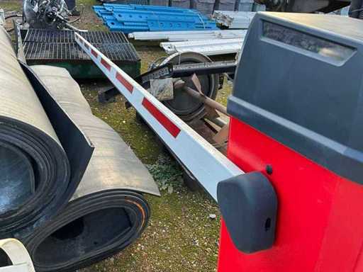 Met een slagboom van circa 4 meter lengte en 115 cm hoog, gedemonteerd.