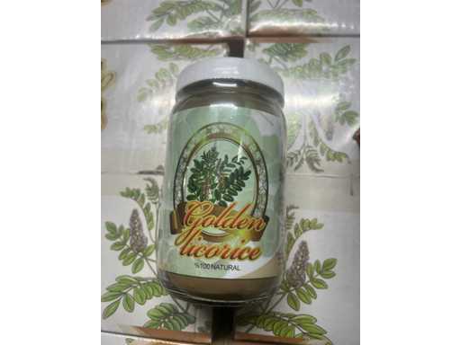Golden Licorice is een premium kwaliteit 100% natuurlijke zoethoutpoeder, zorgvuldig vervaardigd in Iran. Dit product wordt geproduceerd met pure ingrediënten, zonder toevoegingen of conserveermiddelen, en is een uitstekende keuze voor iedereen die wil profiteren van de veelzijdige gezondheidsvoordelen van zoethout. Het zachte poeder is ideaal voor culinaire, cosmetische en medicinale toepassingen.