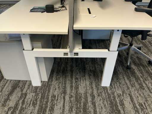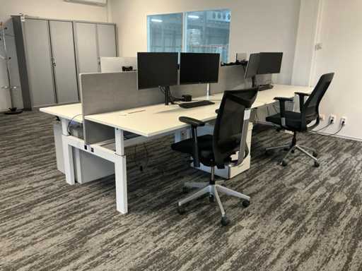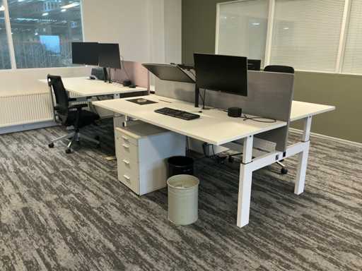 Handmatig in hoogte verstelbaar. Met 6x bureaustoel en 7 ladekasten. Monitoren, Neomounts beugel, dockingstations en toetsenborden/muizen niet inbegrepen.