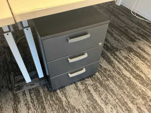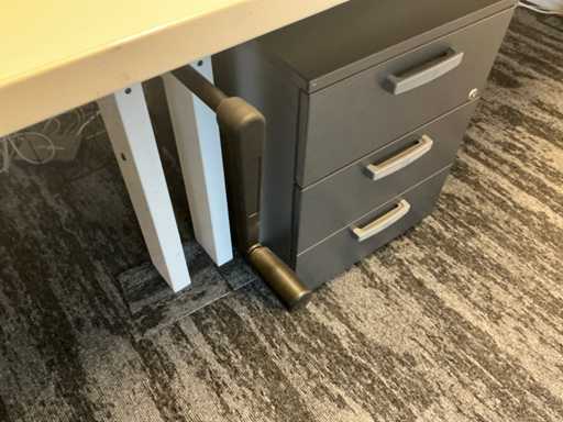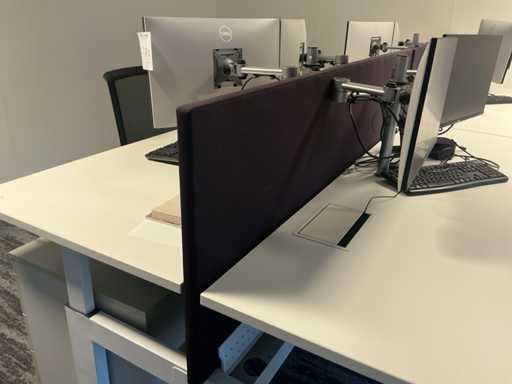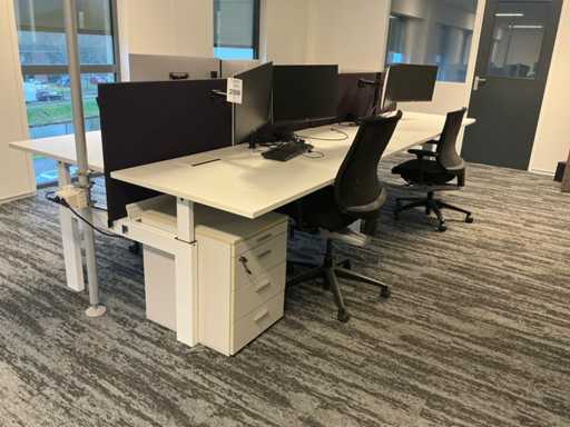 Handmatig in hoogte verstelbaar. Met 7x bureaustoel en 4 ladeblok. Monitoren, Neomounts beugel, dockingstations en toetsenborden/muizen niet inbegrepen.