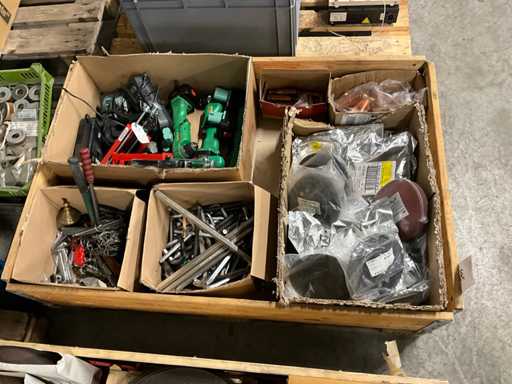 Waaronder schuurmaterialen; inbussleutels; doppen; Hitachi haakse boormachines; lastoebehoren; zonder palletbox