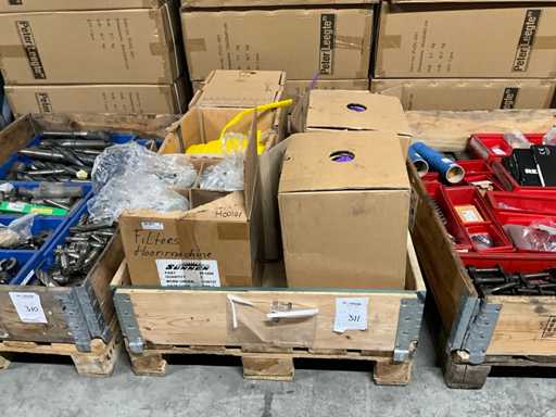 Bestaande uit 3 dozen 10 mm lpde paars en 60 mm geel, alsmede 3 filters ten behoeve van hoonmachine; zonder palletbox;