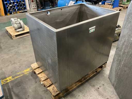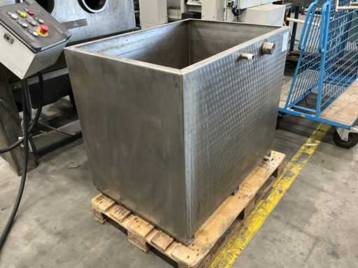 Circa 650 L, 2x 25mm schroefkoppeling, 1x 56mm schroefkoppeling, zonder pallet