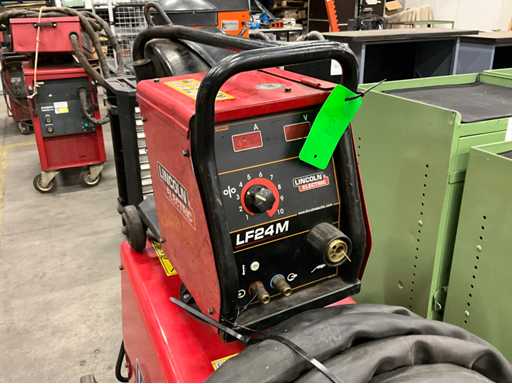 gemonteerd op verrijdbaar onderstel; inclusief leidingen; zonder lastoorts; inclusief Lincoln Electric LF24M draaddoorvoer apparaat; inclusief Lincoln Electric Cool Arc TM25;