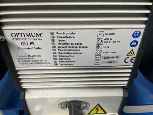 Optimum Optigrind GU 15 Dubbelsteens slijpmachine op sokkel (2x)