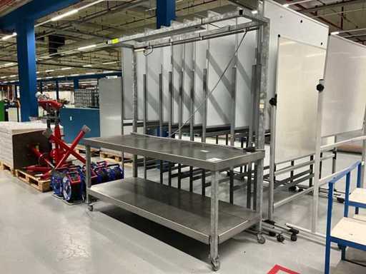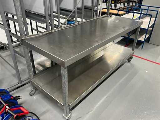 Voorzien van verlichting, RVS werkblad, 4x zwenkwiel, werkblad hoogte circa 820 mm