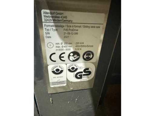2021 Altendorf F45 prodrive Formaatcirkelzaagmachine