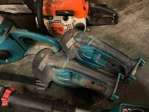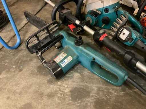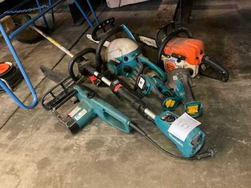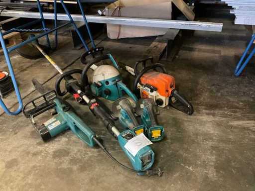 Bestaande uit: 2x brandstof motorzaag, 1x elektrische Makita motorzaag, elektrische Makita kantenmaaier, 2x Makita knipschaar.