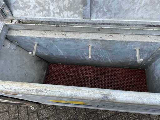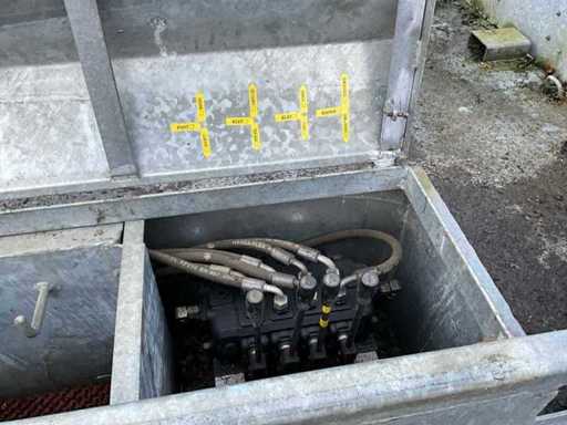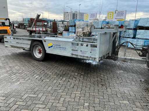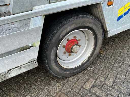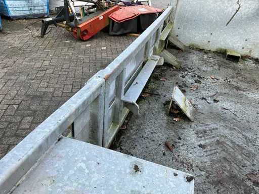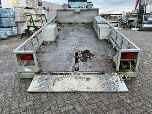 Laadbak 5400mm lang, laadbak kantelbaar, hydraulisch steunpoot voor, hydraulische oprijklep, hydraulische klem tbv wiellader, zijklep met vorkenbord houder, DW ventiel nodig met vrije retour, 35mm sleepoog, 7-polige stekker zonder kabel, exclusief tractor en giant wiellader