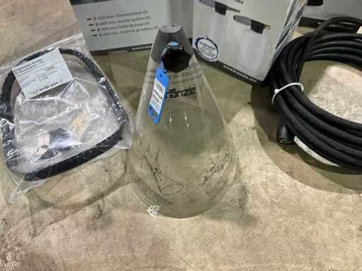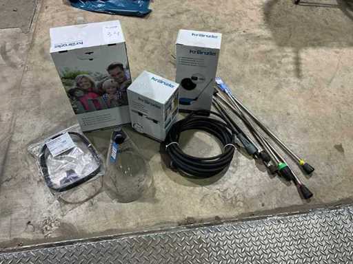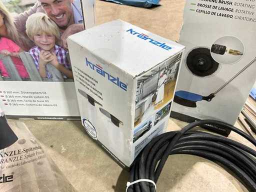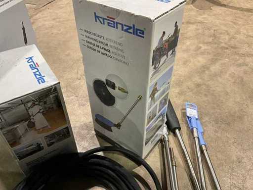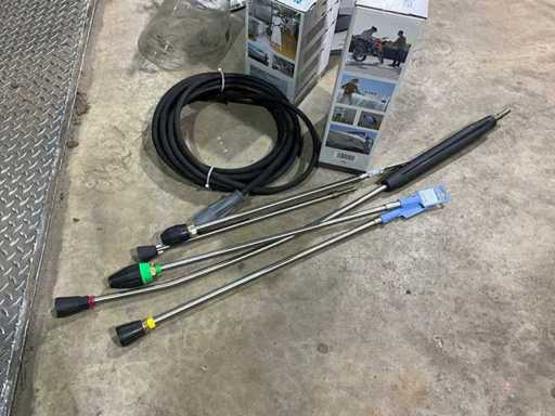 Terras reiniger, schuimsproeier, roterende borstel, beschermkap, slang, 5x eindstuk lans met verschillende kop