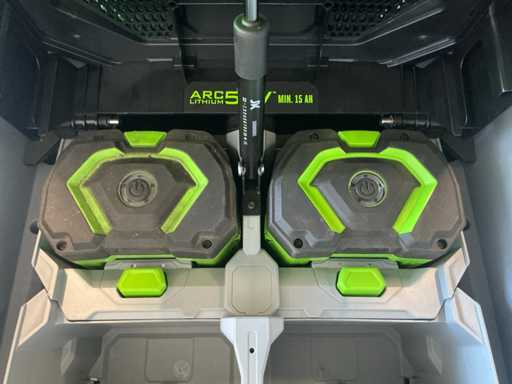 Ongebruikt in doos, voorzien van onder andere 2x 10AH accu, en muurlader