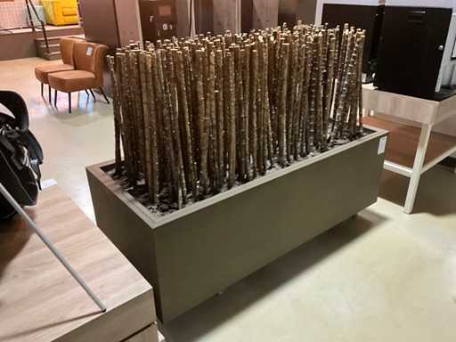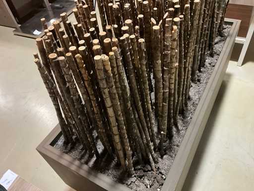 Bamboe stokken in verrijdbare presentatie bak