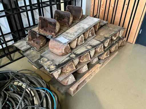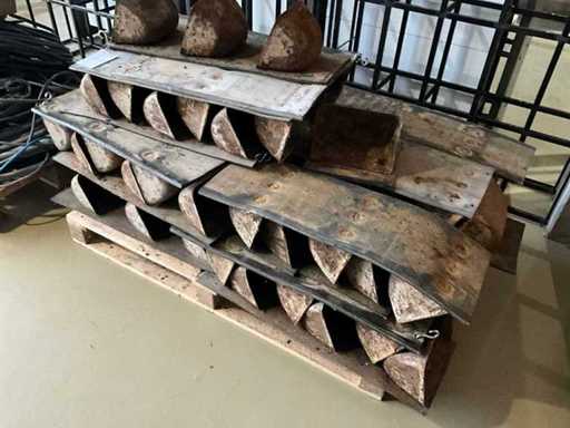 Partij metalen planten bak op rubber transportband uit de voormalige Koudijsfabriek op de tramkade in Den Bosch, enkele met ophanghaken. Ideale creatieve presentatie voor groen in je zaak met Bosche geschiedenis.