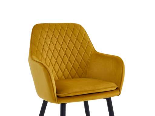 Deze kavel betreft 4 stoelen Colenis - Laura Eetkamerstoel - Set van 4 - Okergeel - Velvet - Design - Industrieel - Met armleuning